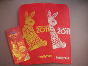 ファミリーマート(中国では「全家」という名前)では12元以上の買い物をすると、この「紅包」という封筒が貰えました。