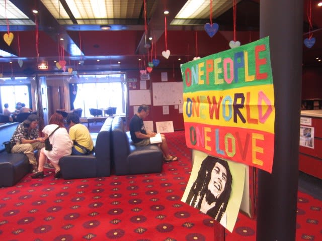 船内では中南米にむけてレゲエやラテン文化に関する自主企画が盛ん。